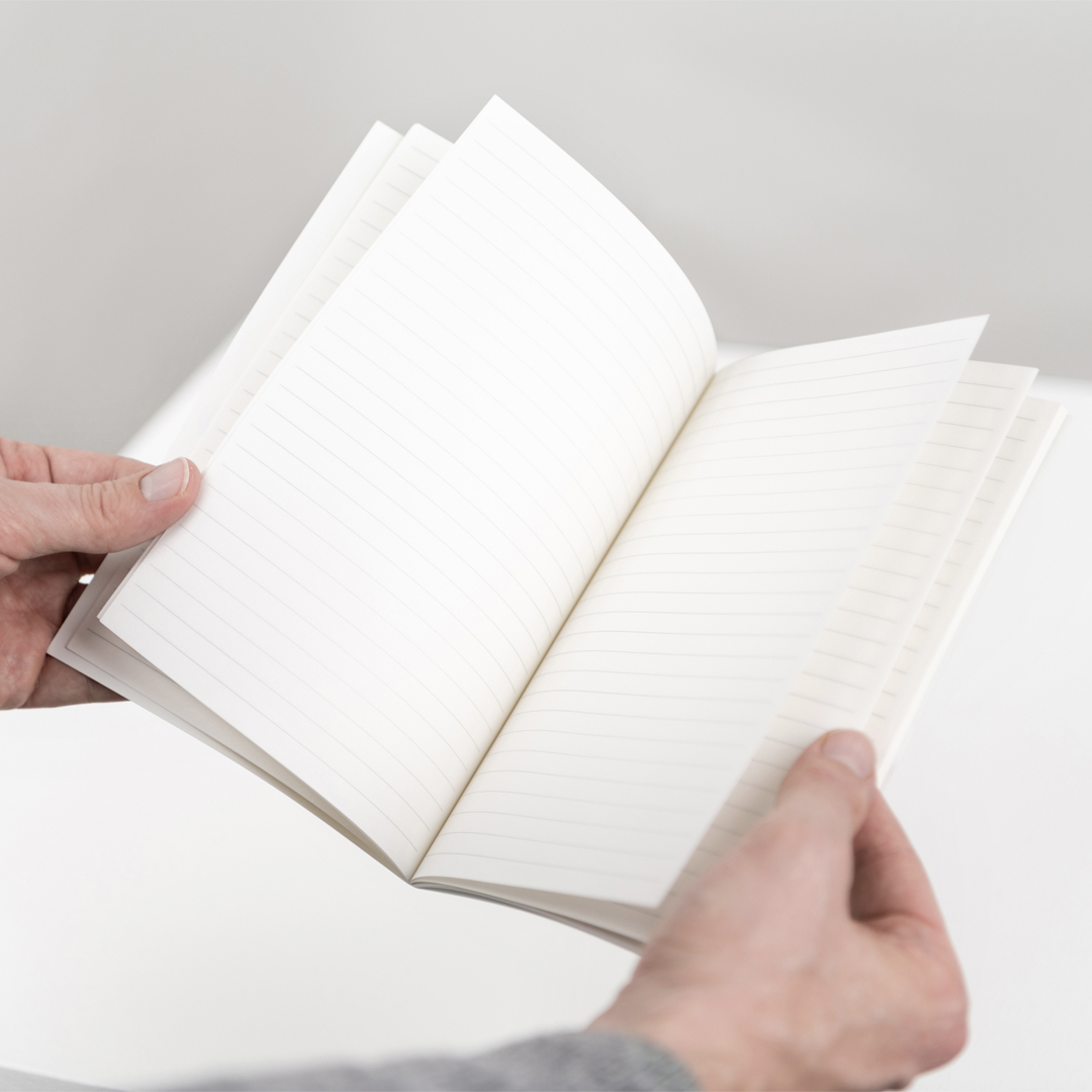 - Pages can be plain, lined, graph or dot grid, and can include printed branding.