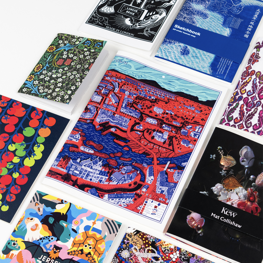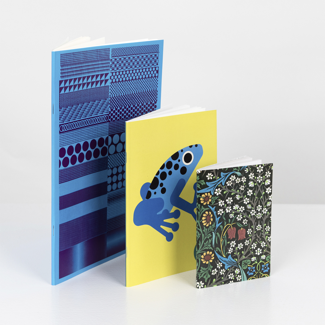 Single notebooks come with a printed cover and stapled spine. Notebooks can also come in sets of 2 and 3.